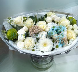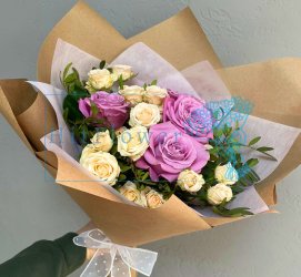 - Доставка букета за черту города + 32 рублей 1 км.